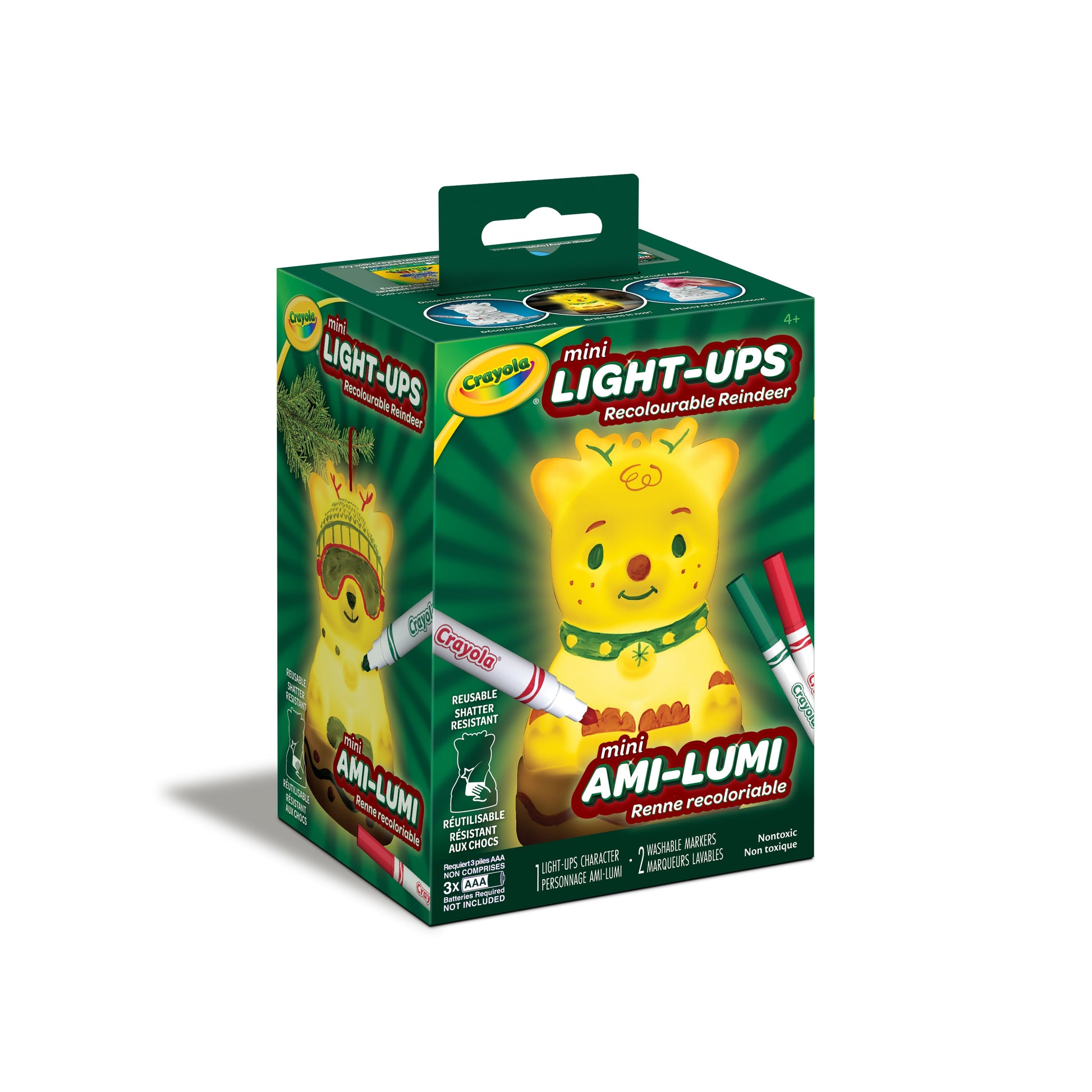 LIGHT-UPS MINI REINDEER: Includes 1 Light-Ups Mini Reindeer and 2 Crayola Ultra Clean Washable Markers (Red and Emerald).