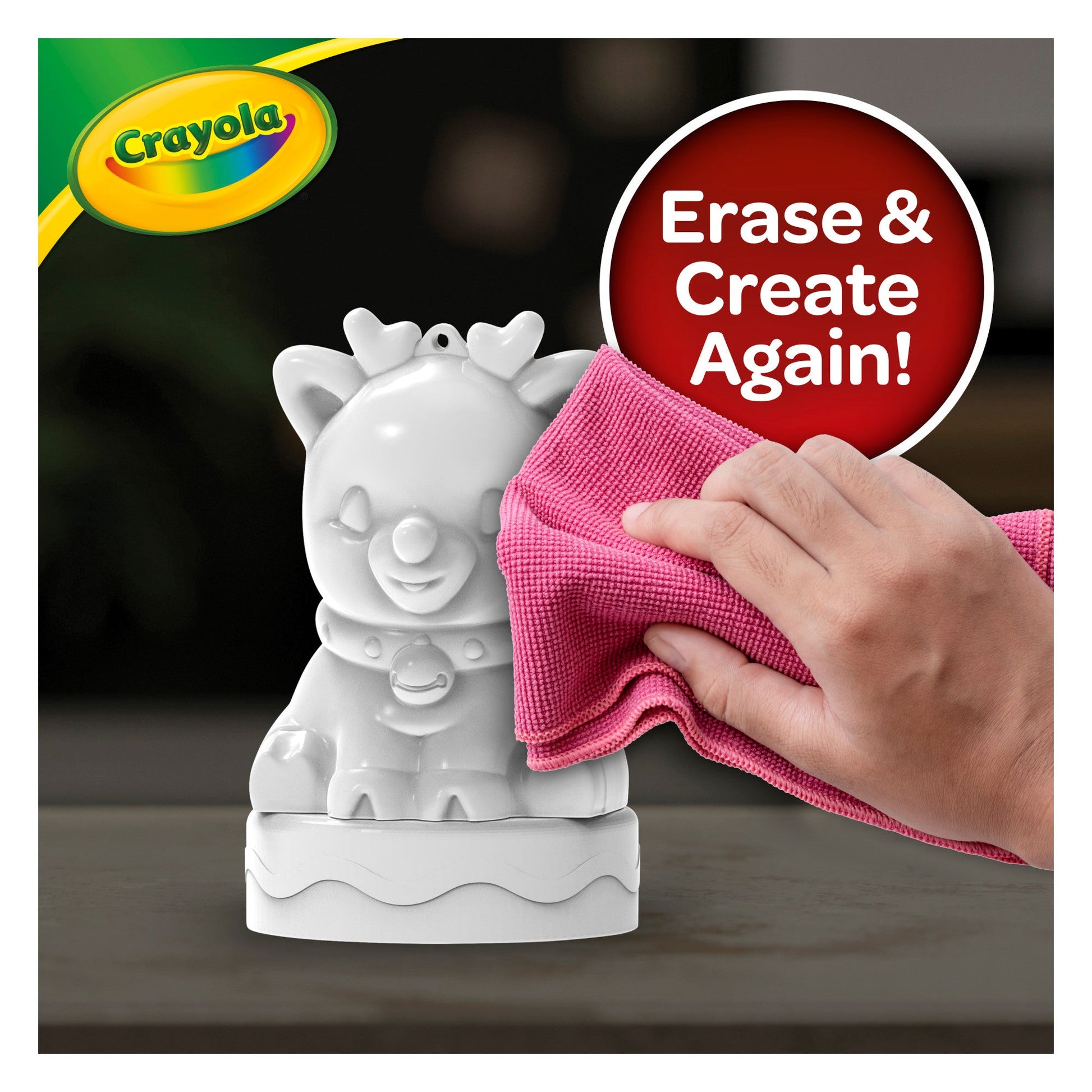 Light up the holiday season with the recolourable Light-Ups Mini Reindeer from Crayola! This all-in-one toy, holiday decoration, and reusable colouring activity, gives kids a new winter tradition to celebrate. First use the 2 Crayola Ultra Clean Washable Markers in Red and Emerald to colour directly on the included cuddly reindeer figure. Adorn your reindeer pal with original designs, or choose whatever look suits them best that day. You don’t have to worry about making mistakes or changing your mind, because it’s easy to erase your designs with a damp cloth and start again as many times as you choose. When your design is ready for display, let it glow in a warm orange light! Crafted from sturdy, shatter-resistant materials, this recolourable reindeer is ideal for kids aged 4 and up.