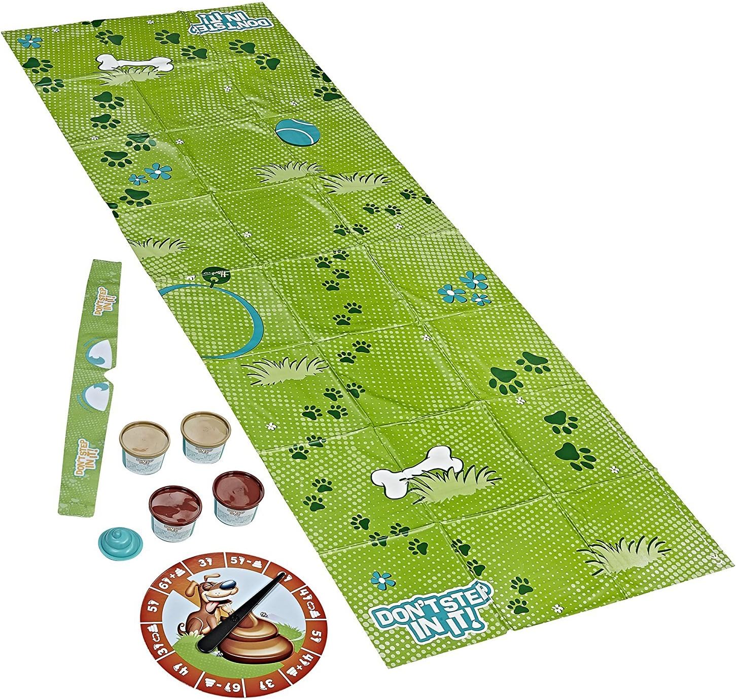 Be careful not to poop out while playing this hilarious game with messy consequences! Put on a blindfold, spin the spinner, and then take that many steps across the game mat. But watch out! Little piles of compound, molded in the shape of poop have been strategically placed on the mat. Sometimes players will have to add a poop, remove a poop, or even re-arrange the poops along the mat. Who can avoid the number twos to be number one to win? Hasbro Gaming and all related terms are trademarks of Hasbro.