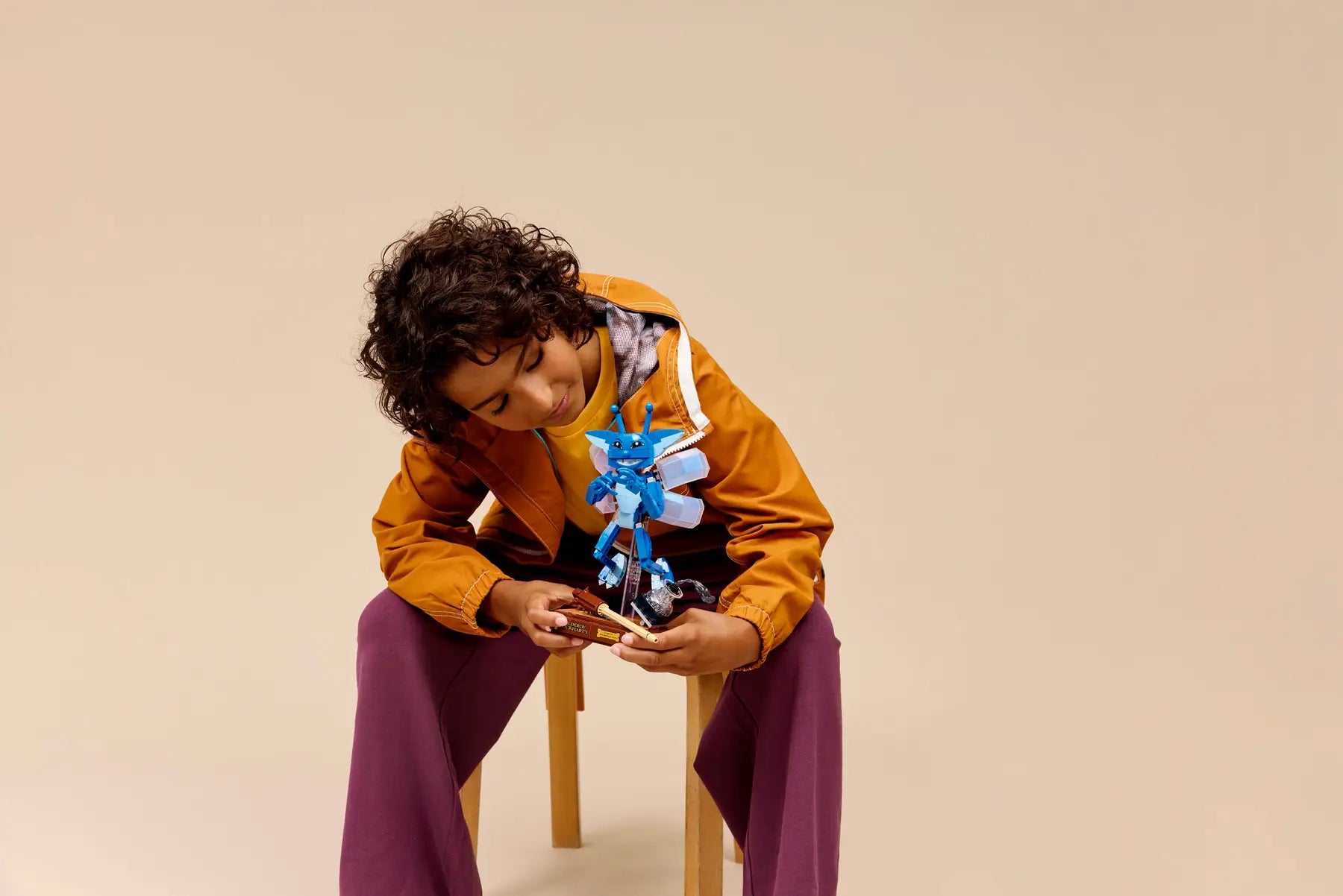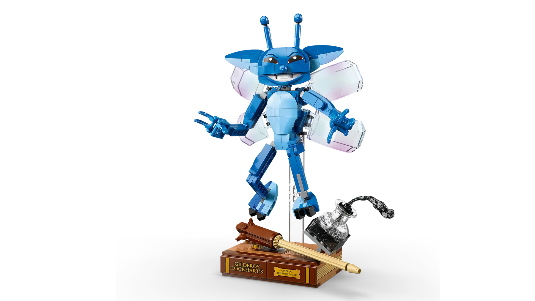 Capture children’s imaginations with the first-ever 1:1 scale model of a LEGO® Cornish Pixie (76461) from Harry Potter and the Chamber of Secrets™. Designed for display and play, this posable figure brings back memories of the chaos caused by Professor Gilderoy Lockhart™ releasing a cage full of the “devilishly tricky little blighters” during a Defense Against the Dark Arts lesson. Pose the Cornish Pixie in flying position on the transparent display stand, or pose it in a standing position and play with it on its own. This building toy for kids also comes with iconic accessories: display the Cornish Pixie figure with the buildable Gilderoy Lockhart™ book and bottle of ink that’s spilling over. This model kit makes a magical LEGO Harry Potter™ gift for girls, boys and any fans ages 8 years old and up. And kids can build with confidence using the LEGO Builder app – zoom, rotate in 3D and track progress with easy-to-follow digital instructions. Set contains 320 pieces.