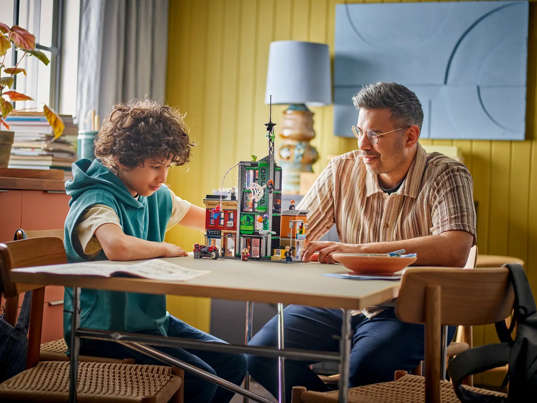 The street scene comprises 3 separate buildings: Miles Morales’s apartment with a jewelry store underneath, the Oscorp building, and Venom’s apartment with a convenience store below. Each room is furnished with relevant equipment and accessories. 8 LEGO minifigures from the Marvel movies ensure endless web-slinging action: Spider-Man, Spider-Woman, Miles Morales with his motorbike, Eddie Brock, Ghost-Spider, Norman Osborn, Kraven the Hunter and Green Goblin with his glider. Transparent sticks allow kids to position and pose characters with realistic ease. Build Together on the LEGO Builder app lets friends and family share the creative fun. Contains 808 pieces.