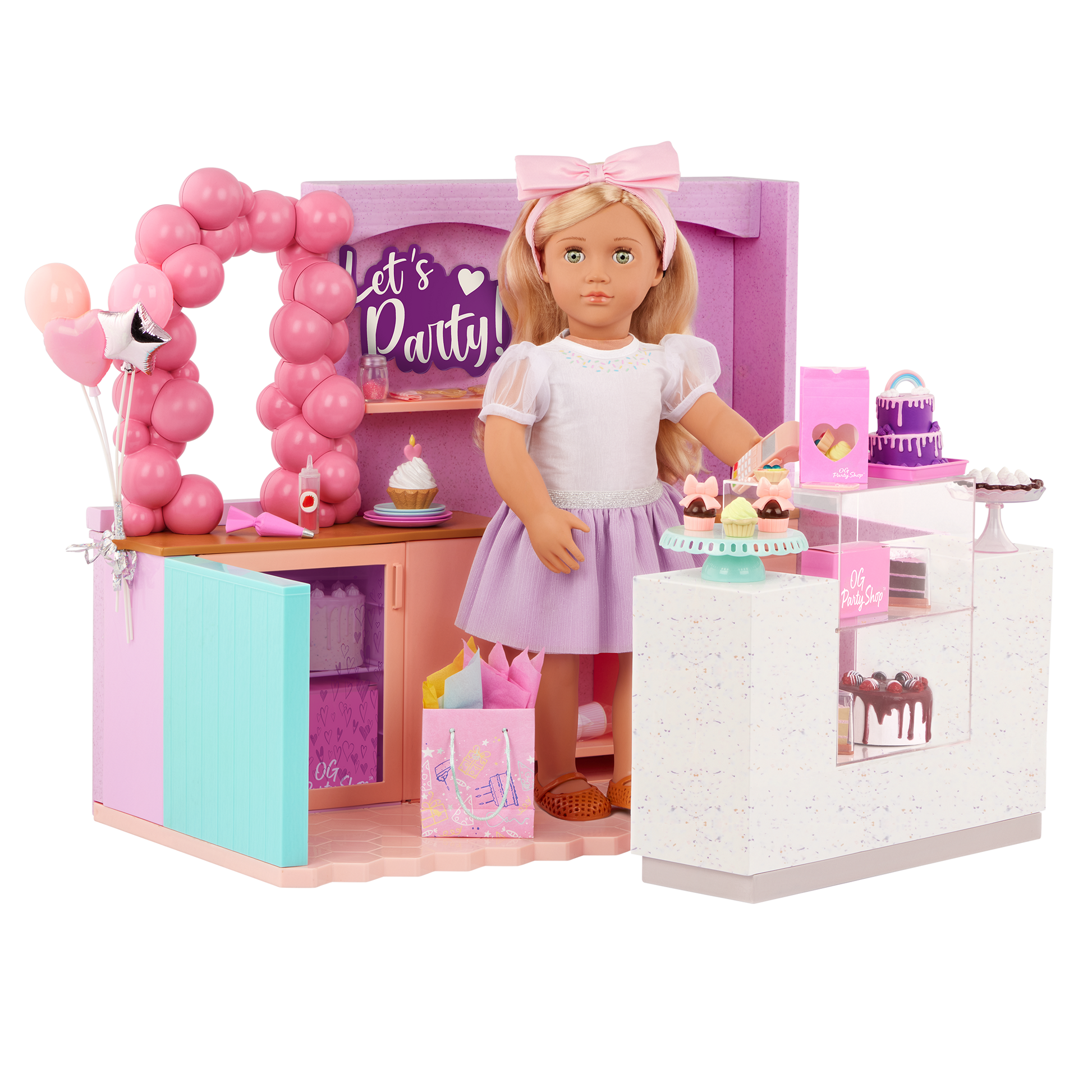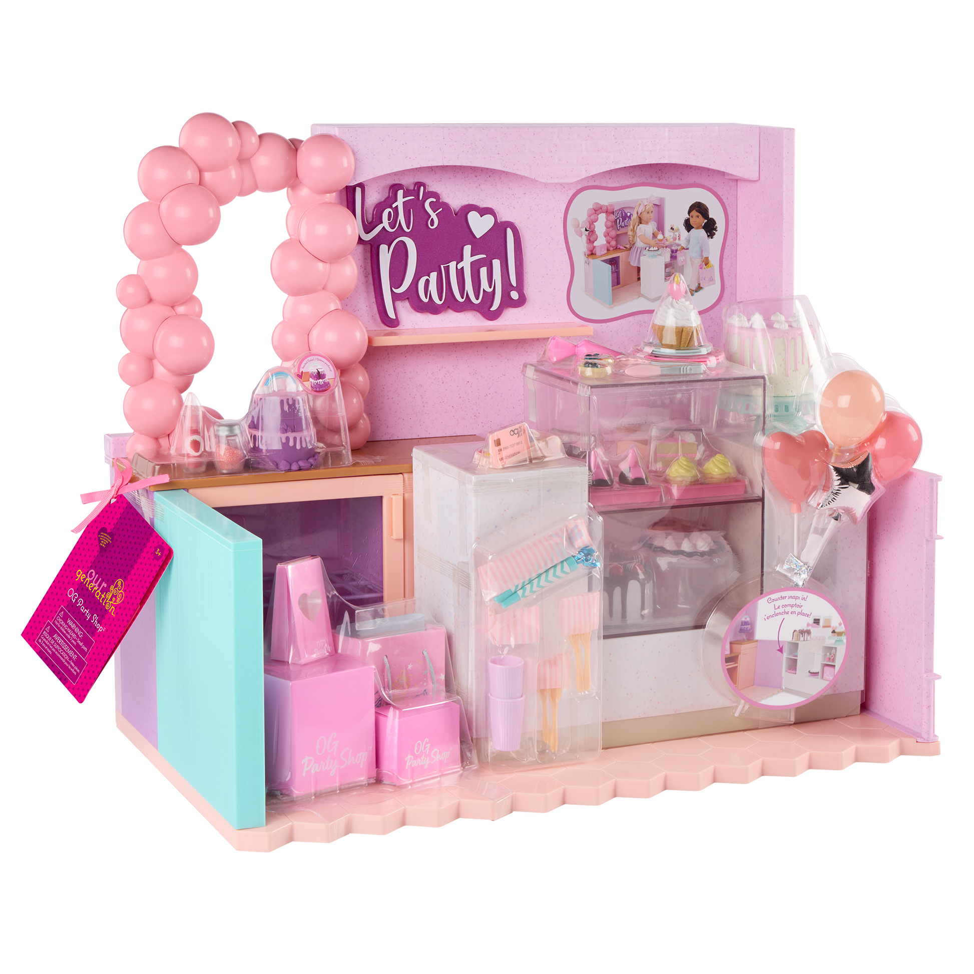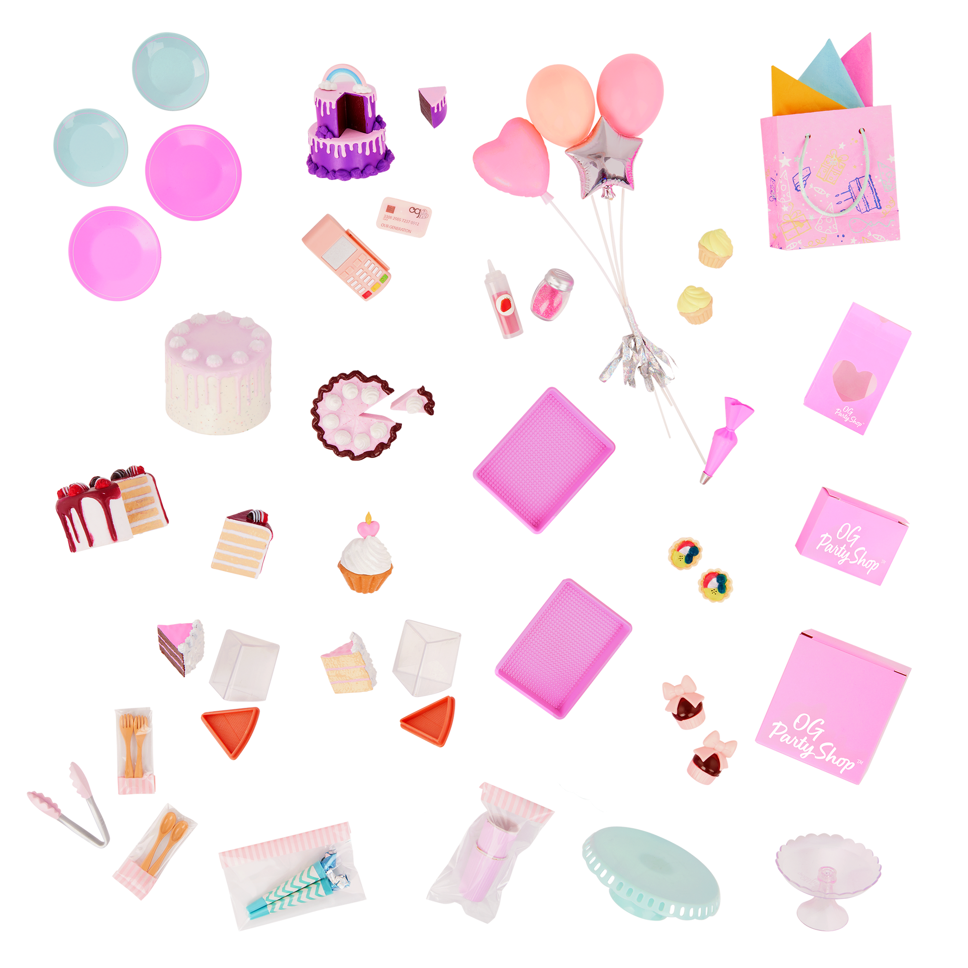 - 59-pc Party Shop Playset: Turn every day into the ultimate surprise celebration with the Our Generation Party Shop for 18-inch dolls!