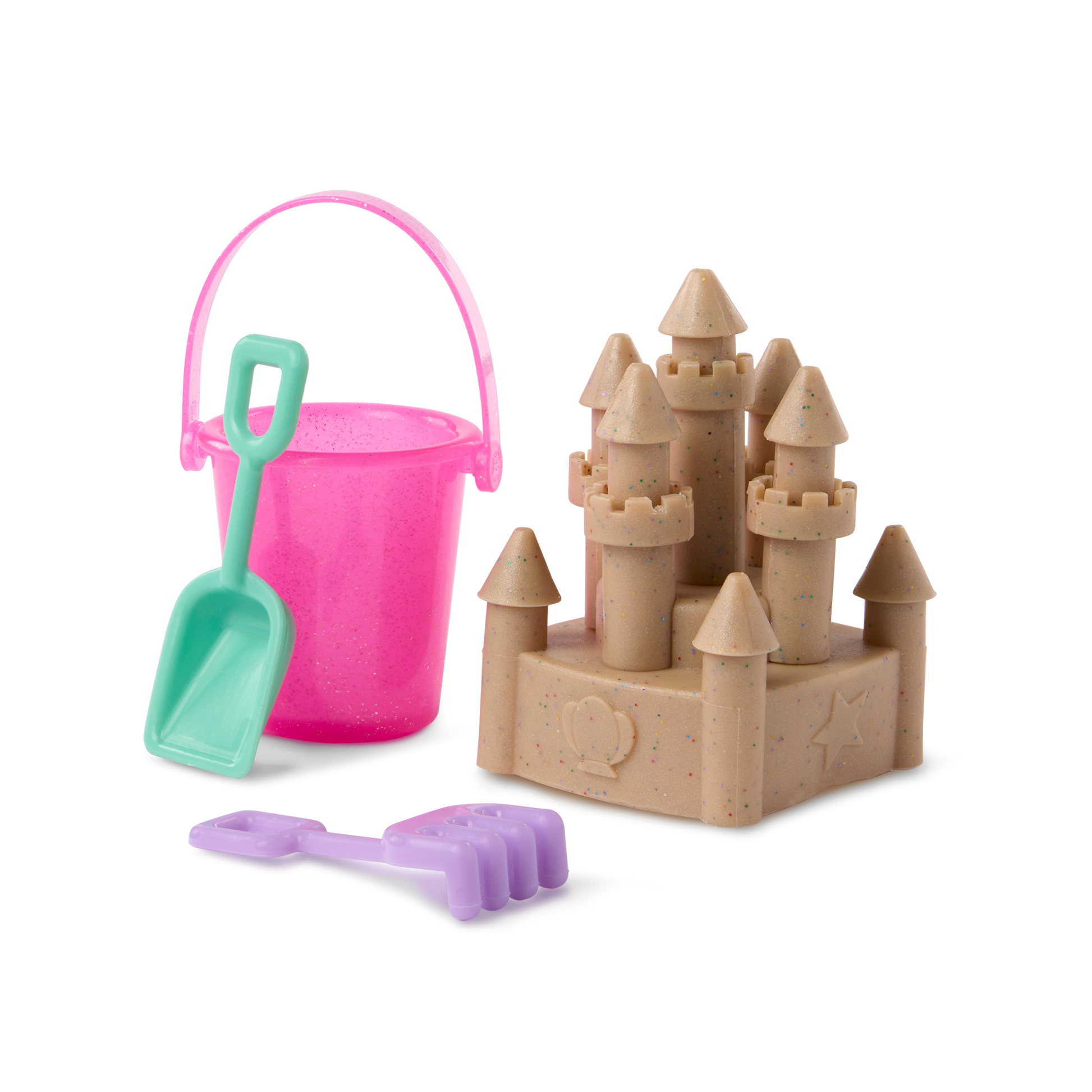 - Includes: Shimmery mermaid tail, a ruffle swimsuit top, cute swimsuit bottoms, inflatable seashell pool float, starfish hair deco that easily sticks to doll’s hair, detailed sandcastle, shovel and rake beach toys, and a glittery bucket.
