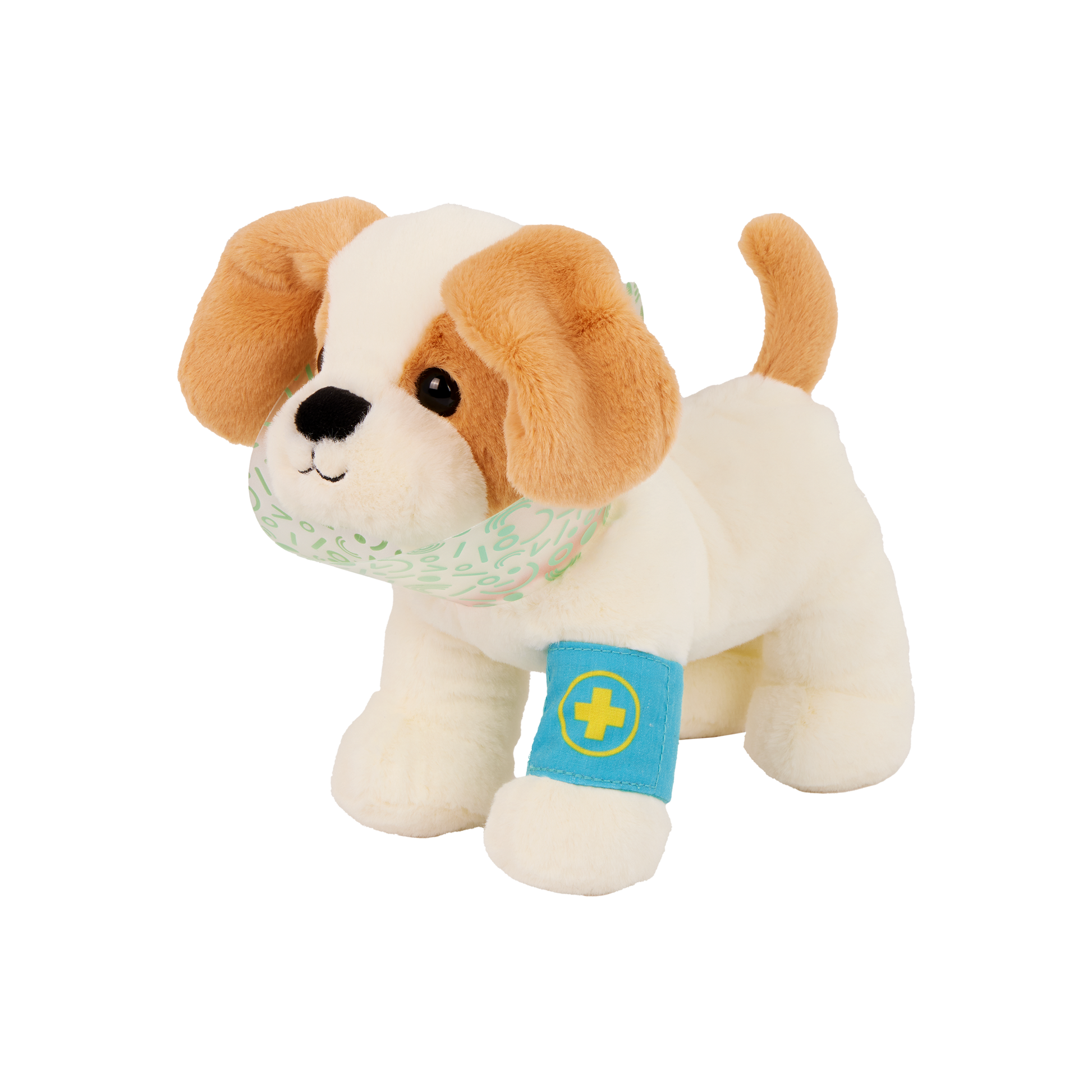 - Includes: A plush pup, carrier bag, stethoscope, cone, fabric bandage, bone, and more.