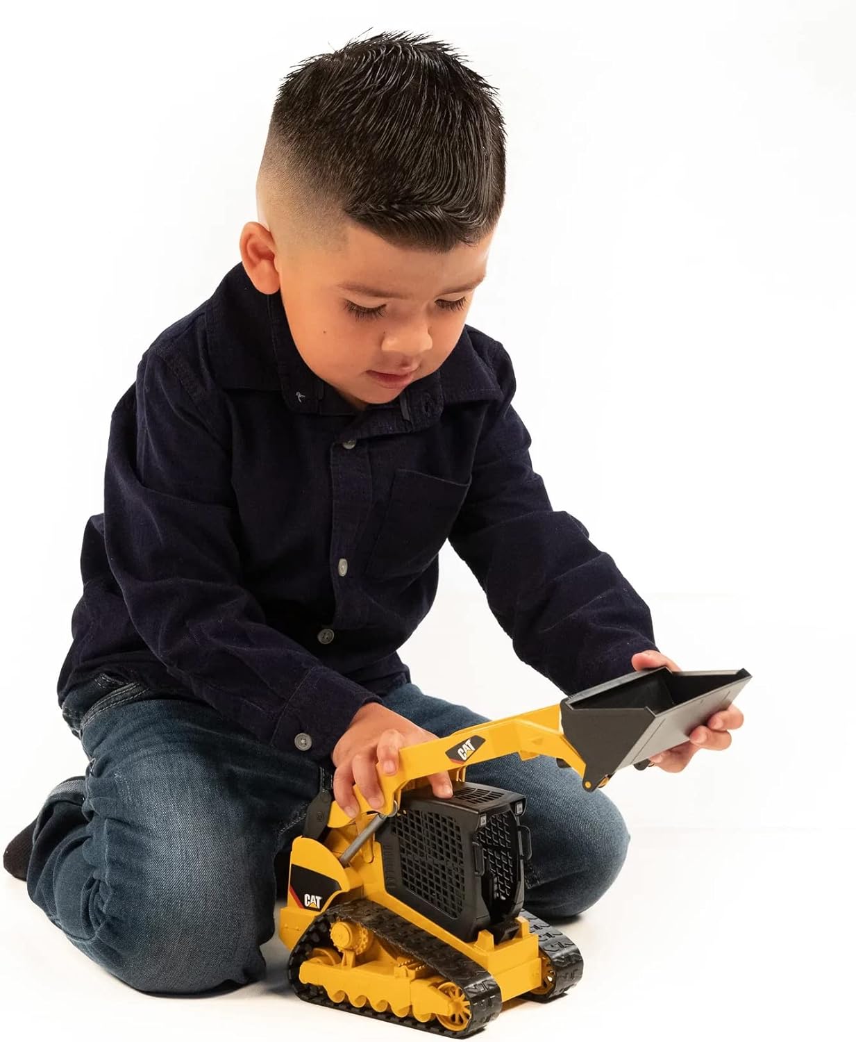 The CATERPILLAR Multi terrain loader is truly multi-functional. Powerful, flexible and mobile: it is the number one choice for any small area. The functions of the CAT Multi terrain loader are comparable to those of the CATERPILLAR compact loader, but the Multi terrain loader has a rubber-chain drive, creating a much lower ground pressure. It is great fun seeing how precisely the chains work while you move the CAT Multi terrain loader over all types of surface, particularly when playing. The movable arm of the CAT Multi terrain loader can be locked in many positions and reach particularly high thanks to its special construction. An adaptor for attachments already used on several BRUDER vehicles allows the CATERPILLAR Multi terrain loader and its attached equipment to master all types of work in no time.