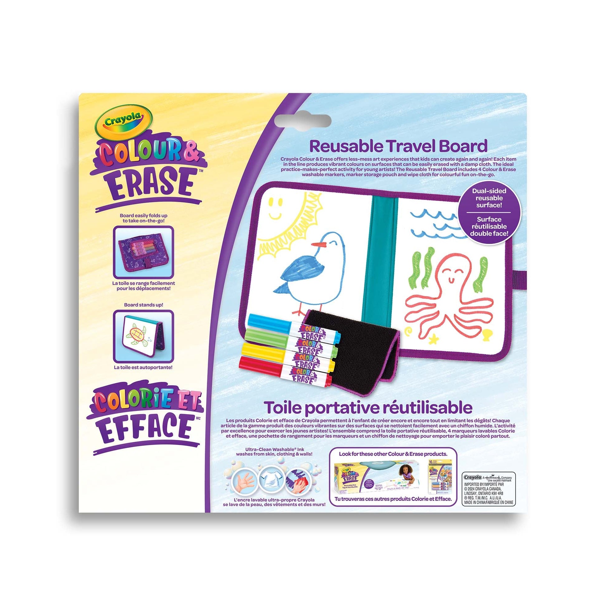 Kids are ready to doodle, colour & draw anytime, anywhere with the Crayola Colour and Erase Travel Board! It features a travel carrying case with a dual-sided board, 4 washable markers, and a wipe cloth. Whether creating while traveling in a car, colouring at a park bench, or drawing in the classroom, these colouring supplies are simple to use and clean! When kids are ready to start a new drawing, they can easily wipe and clear their board with the included cloth. If colour goes off the board, these washable markers will clean from skin and clothing. It is perfect for kids, and makes a great holiday or birthday gift. Ideal for kids, ages 3 & up.