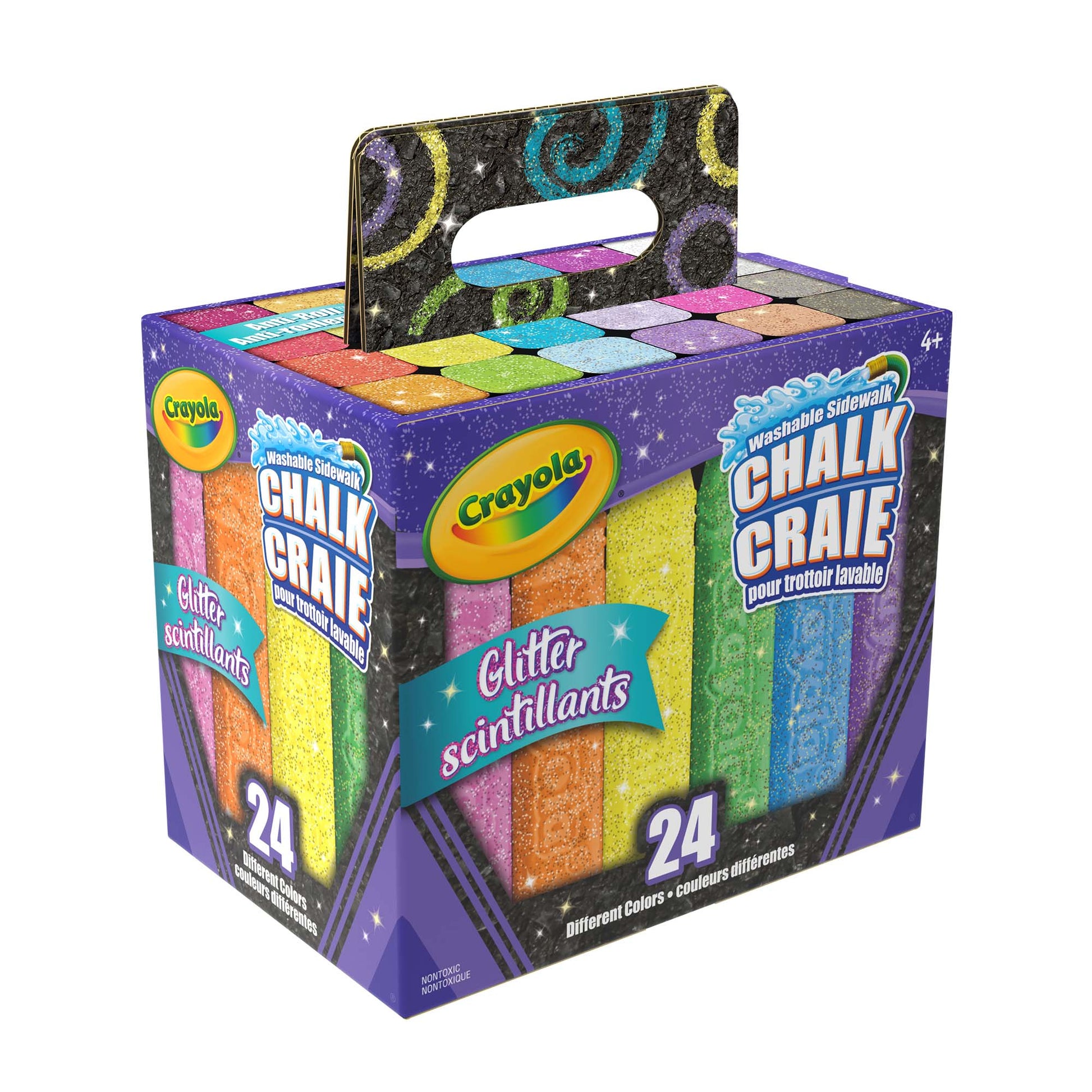 GLITTER CHALK: Transform your sidewalk or driveway into a dazzling display of shimmer and shine with Crayola Glitter Chalk's 12 gold and 12 silver glitter-infused sticks.