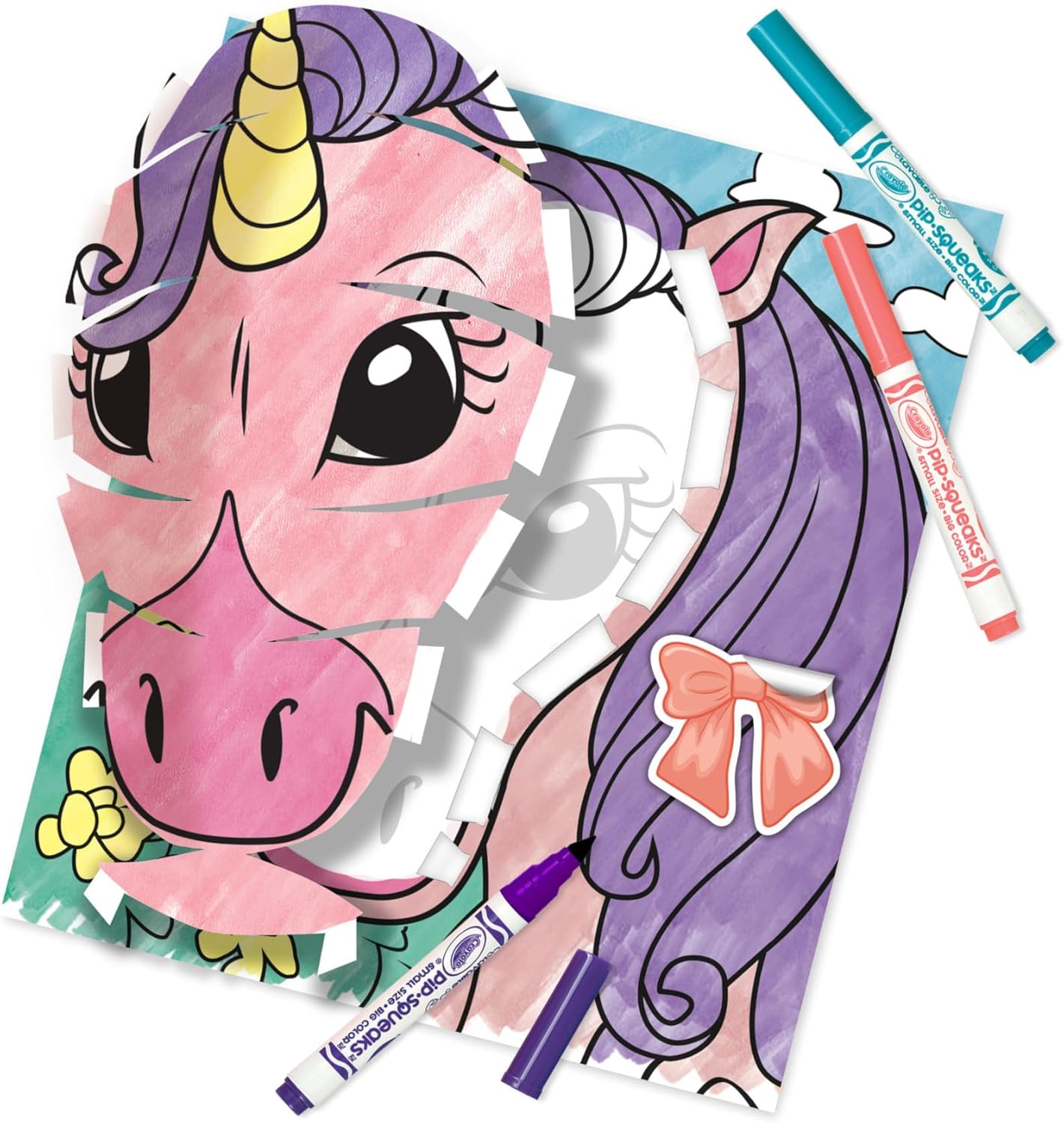 - COLOURING ACTIVITY: Features 3 Background Pages, 3 Pop-Out Pages, 3 Sticker Sheets, 1 Tape Sheet, and 5 PipSqueaks Markers.