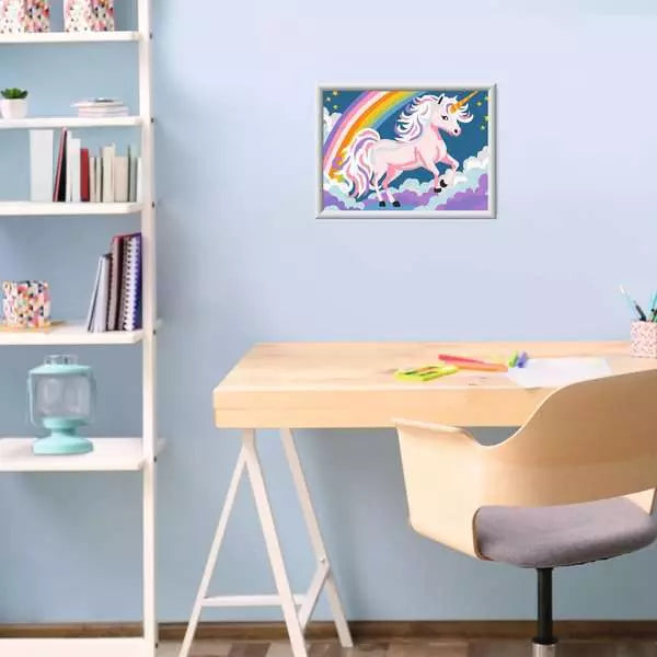 Thanks to the colored design lines that outline the painting fields, the children can recognize the whole picture Pink Unicorn and the colors more quickly. The brush is easy to control and a perfect picture can be created little by little.
