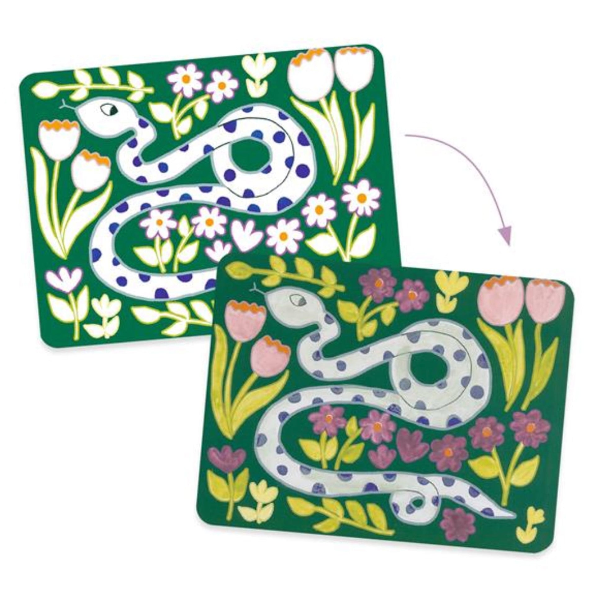 Little artists can discover paint in a fun and age-appropriate way. With palettes printed directly onto the sheets, they can paint ‘like grown-ups’, without the need for cumbersome or messy equipment. Everything has been thought out to provide children with a fun and practical activity that will build their confidence!