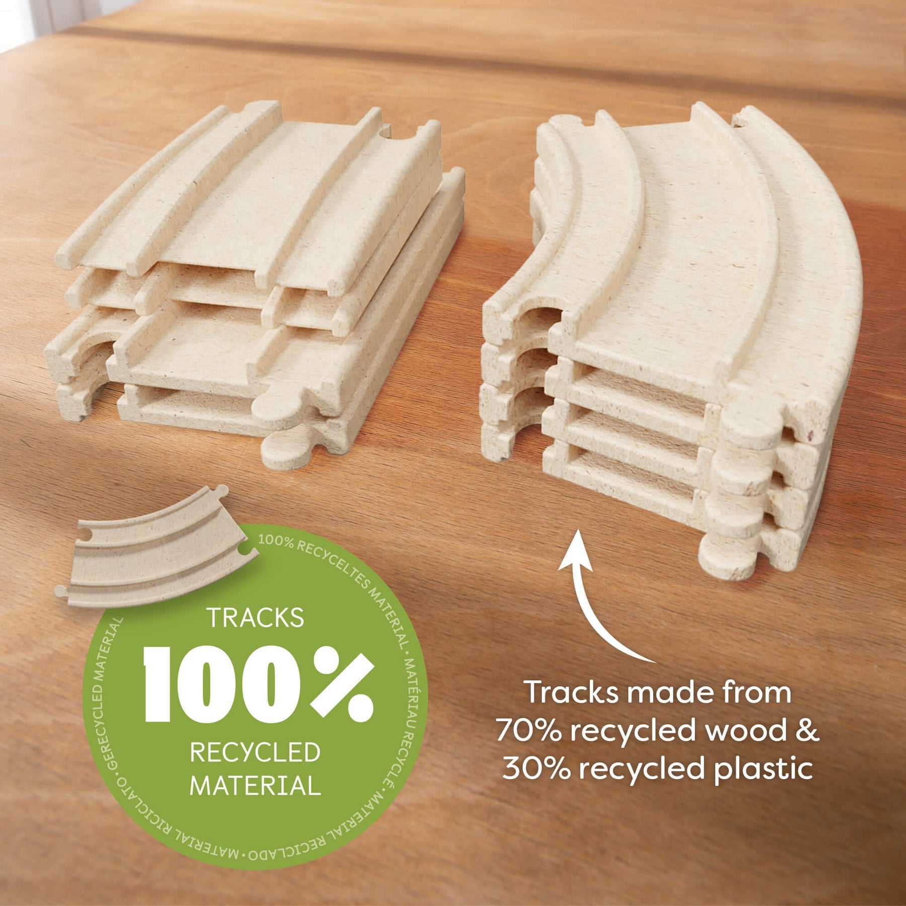- What’s in the Box: 4 curved track pieces, 2 straight track pieces, 2 ramp pieces, 1 instruction poster