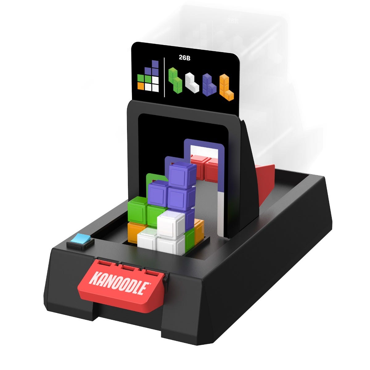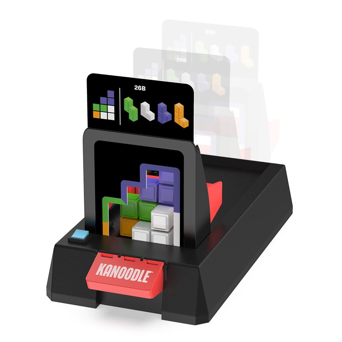 Put your strategic thinking and 3D reasoning skills to the test in a race against the clock with Kanoodle® Shape Escape. Choose a challenge card from the 50 double-sided options and slide it into the frame. Start the timer and use the 7 included blocks to build a shape that matches the cut-out on your card. Watch out because the moving timer wall adds an exciting twist. If your shape doesn’t fit through when time runs out, it will come crashing down! Perfect for solo play, Kanoodle Shape Escape offers an exciting blend of strategy and speed.