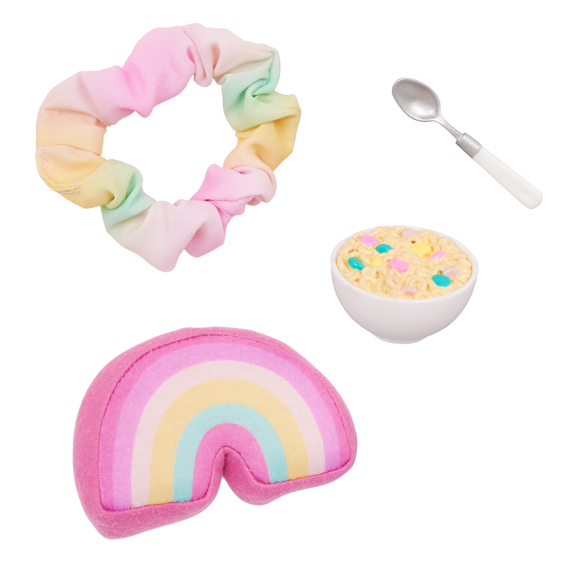 - What’s Included: Gillian comes with a pink floral-print dress, a rainbow pajama and pillow, a pair of undies, tall socks, shoes, a hair scrunchie, a bowl of cereal, and a spoon.