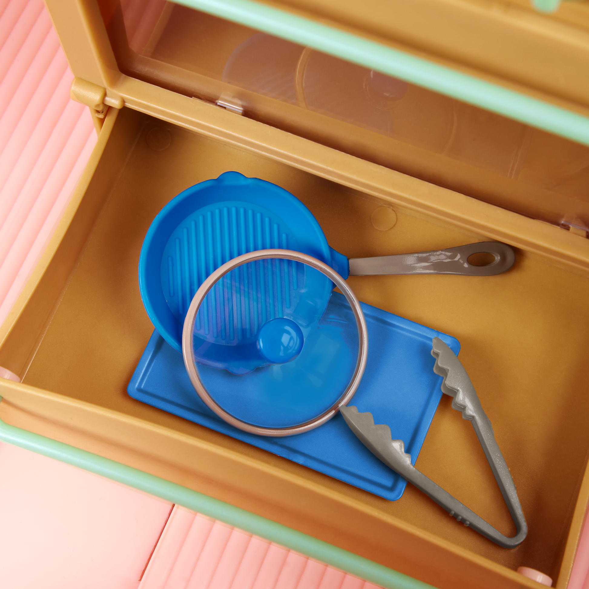 - Prep & Play: Little chefs will find an oven and grill with movable knobs, a smoothie station, and serving counter inside the food truck to “cook” and prep food orders.
