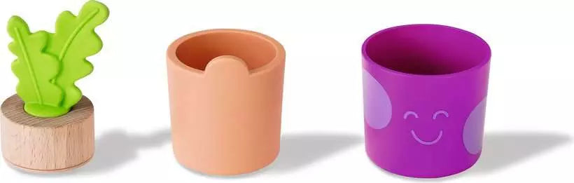 Introduce children to size differences in a playful way whilst encouraging role play with this little plant set. Based on Montessori concepts, this Puzzle and Play set helps teach children about different sizes whilst having fun. Budding little gardeners can puzzle and play with this My Little Plants set. Based on Montessori principles, children can begin to understand different sizes by placing the pots into the puzzle shelf. The next stage encourages fine motor skills as you place another pot inside the plant pot. The final stage of the puzzle helps teach sizing and diameters as children need to place the correct size plant in each pot; an ideal first puzzle for little ones.