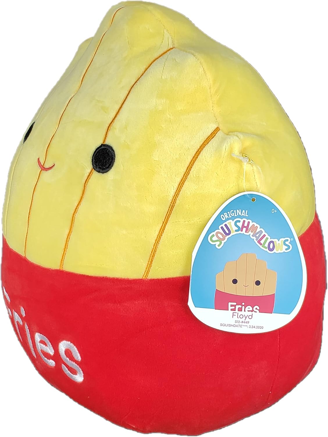 Add a fast food run to your Squishmallow squad with this French fries plush named Floyd. This savory stuffed animal wears a red box with "Fries" label and a matching red scarf. Made from soft polyester with a marshmallow-like texture, this medium-size Squishmallow stands 12" tall and makes a fun gift for birthdays, holidays or just because.
